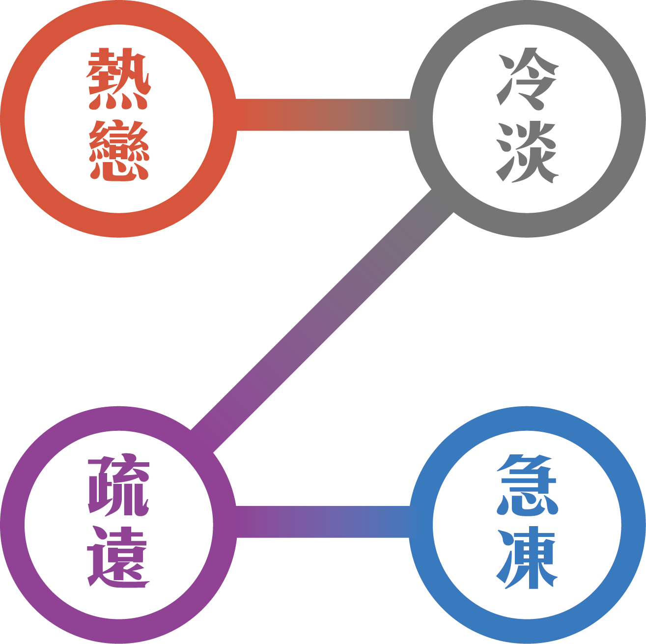 由盛轉衰的過程熱戀→冷淡→疏遠→急凍四個過程